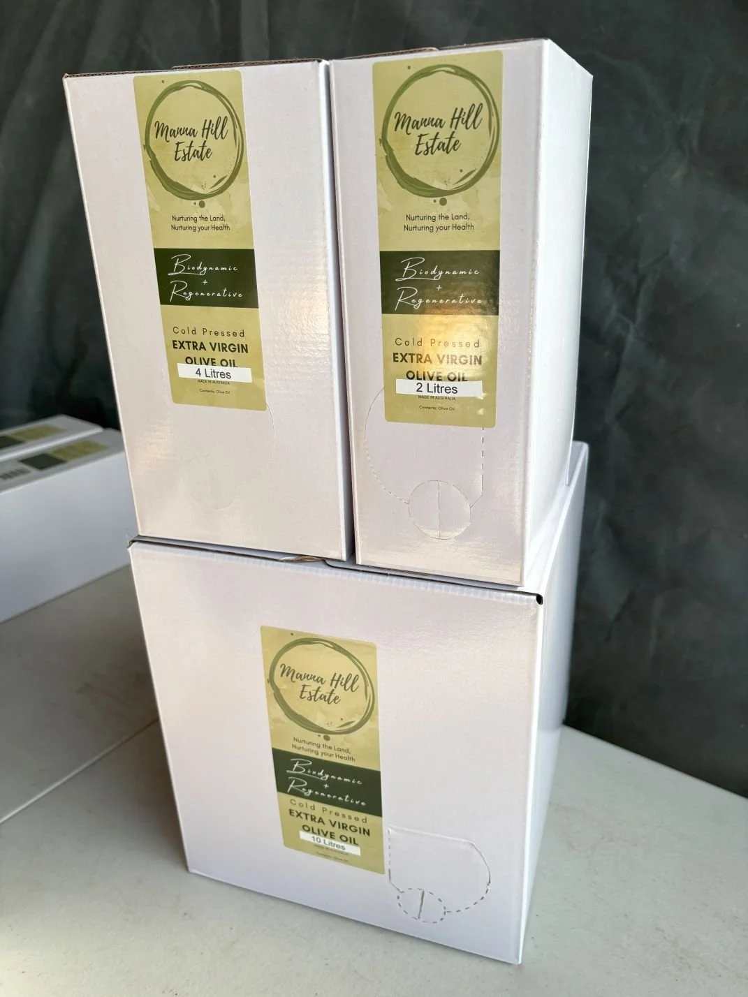 Our certified biodynamic-organic, regenerative, extra virgin olive oil (cold pressed of course!) has now settled and we are now filling into casks. Note that we let our oil settle rather than using filters as we believe that filtering takes out some of the natural flavonoids and goodness associated with the oil. Our casks (2L, 4L and 10L) are available for sale on our website though there will be limited quantities this year due to the relatively poor harvest.